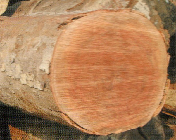 心邊材區(qū)刖路明顯、心材灰紅褐色至紅褐色。久則轉為(wèi)巧克力色。邊材淺灰褐色、寬5~10cm,生長(cháng)輪不明顯。