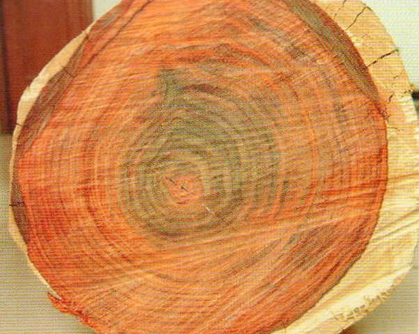 心邊材區(qū)别明顯,心材新(xīn)切面紫紅褐或暗紅褐.常帶黑褐或栗褐色深條紋(俗稱黑筋).非常漂亮;邊材灰白色。生長(cháng)輪不明顯或略明顯。
