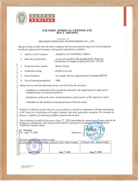 工(gōng)廠和産(chǎn)品都通過法國(guó)“BV”認證,“FSC”認證和中(zhōng)國(guó)“CCS”認證